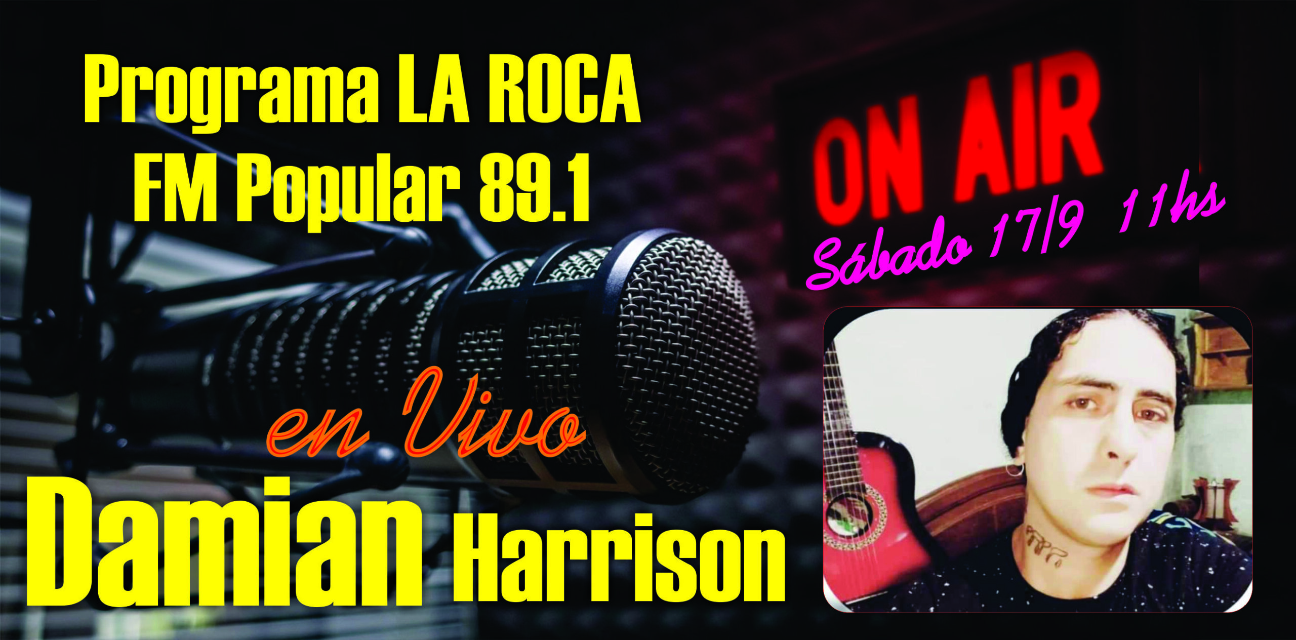 El Programa La Roca se trasmite en vivo los días Sábados De 10 hs a 12 hs por Fm popular 89.1, Ubicada en el corazón de la ciudad de Claypole en el partido de Alte Brown en la provincia de Buenos Aires, Republica Argentina y este sábado 17 de Septiembre vuelve a recibir a Damian Harrison el Artista Argentino que ya empieza a sonar en todas las Radios.