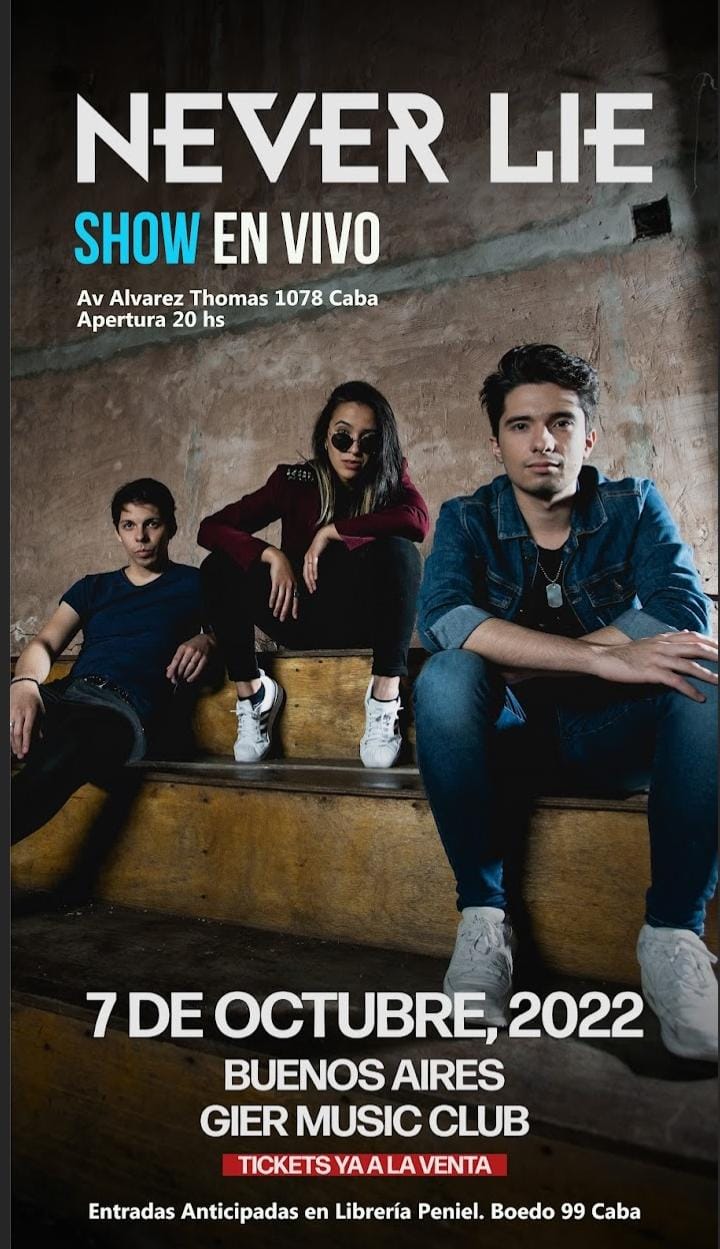 Never Lie es una banda argentina de rock, fundada en el año 2017 en el Barrio porteño de Colegiales. El 21 de enero de 2018, la banda publicó su primer material titulado: “En Honor a los Redimidos”, del cual recibieron una rápida aceptación por medio de la audiencia con la canción “Llenas Mi Vida”. Ese tema se viralizo de tal forma que forma parte de varias playlists en YouTube. Never Lie lanzó el 19 de febrero de 2019 su single “Ahora Soy” para reafirmar sus convicciones frente a la realidad social. Posteriormente el 14 de junio de este mismo año publicaron “Haz Lo Que Quieras” canción que les está dando lugar en el circulo emergente local y alrededores de la ciudad. Su siguiente trabajo está en proceso y es un nuevo álbum conceptual del cual, hasta el momento, se dio a conocer que va a tener un sonido renovado y canciones que reflejan el camino recorrido por el grupo. La crítica, asimismo, enseña que la esencia de la banda recae en el drama de vivir y sus multiformas en la búsqueda de la identidad. Definitivamente Never Lie le canta a los desahuciados, deprimidos, a los que piensan que todo está perdido, invitándolos a ver la vida desde otra perspectiva, dándoles así en cada canción un mensaje de esperanza y fe para seguir adelante.